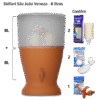 O filtro Veneza tem um design moderno e sóbrio que combina um recipiente plástico resistente na parte superior com a tradicional base de argila, que conserva a água fresca e natural.